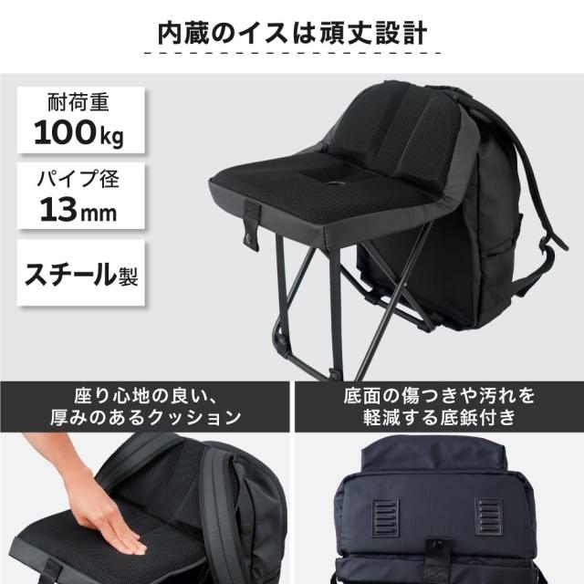 どこでも座れる「BACK PACK CHAIR」どこでも座れる椅子付きリュック。デザイン性・機能性共にアップして新登場。