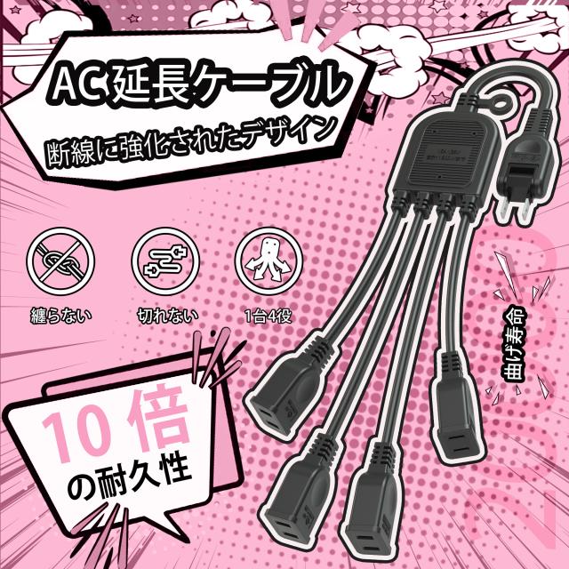 【ACアダプタ専用電源延長コード】【あす楽 送料無料】延長コード 4分岐 2P 黒 分配コード すっきり接続 4分配 15A 1500W スイングプラグ 耐トラッキング 二重被覆 絶縁キャップ 電源増設 ちょっとコード ソフト 短い 電源コード 延長ケーブル 電源ケーブル 業務用 作業用