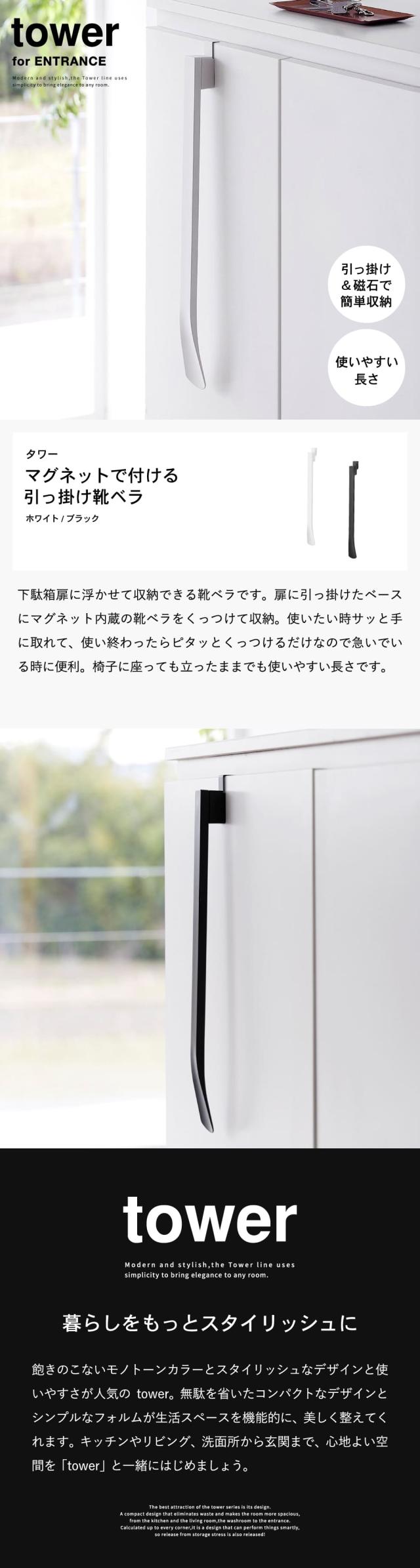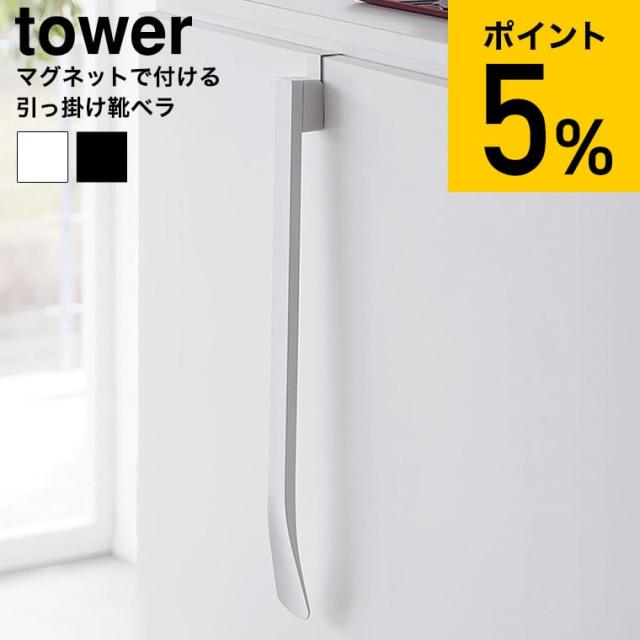 山崎実業 公式 tower マグネットで付ける引っ掛け靴ベラ タワー 1634 1635 ホワイト ブラック 靴べら くつべら 玄関 収納 浮かせる収納 下駄箱 玄関扉 磁石 貼り付け JGS