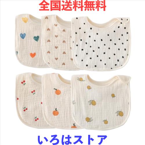 [GoUseGo] ベビー スタイ よだれかけ 男の子 女の子 6枚セット 綿 ガーゼ地 赤ちゃん お食事スタイ 新生児 1歳 2歳 3歳 お食事用 コット