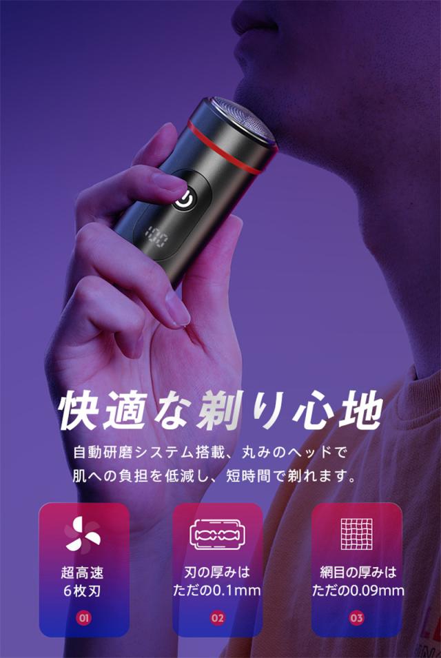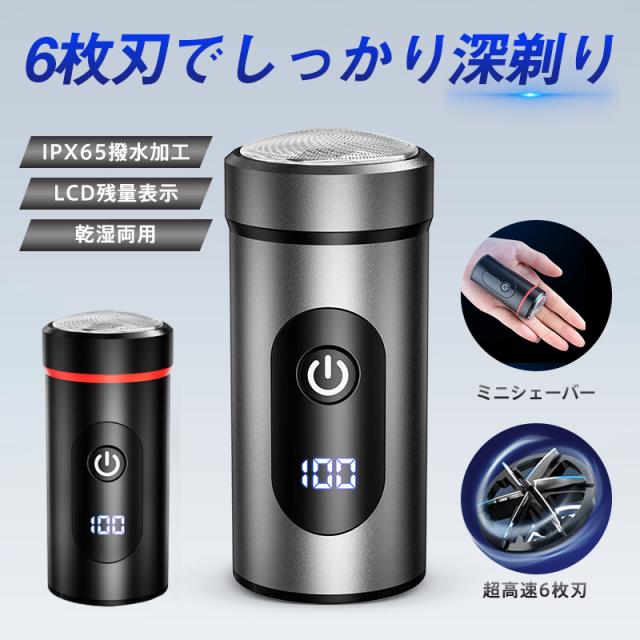 シェーバー 電気シェーバー ミニ 小型 回転式 電動シェーバー 乾湿両用 6枚刃 IPX65防水 髭剃り 残量表示 USB充電式
