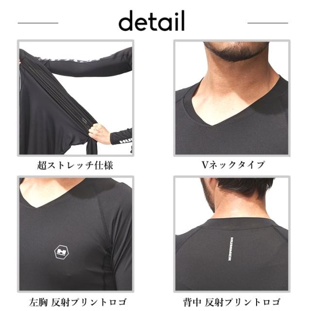 【即日発送】インナーシャツ メンズ 薄手 HUMMERブランド ハマー 超ストレッチ 極薄地 のびのび 消臭 UVカット ストレッチ 速乾性 Vネック アタックベース 907115 春 夏 秋 冬 年間 コンプレッション インナーウェア HUMMER【送料無料】