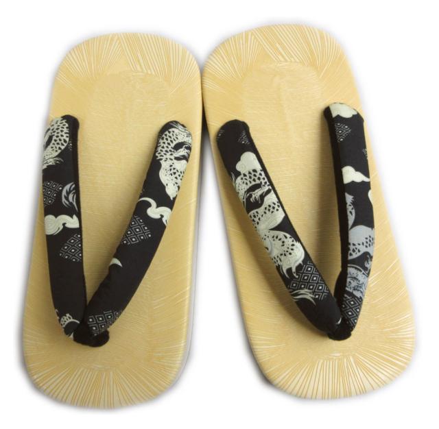 雪駄 スポンジ底 メンズ 男性 黄畳台黒地龍雲 4L 30cm 浴衣 着物 甚平 大きいサイズ ビッグ 男物 紳士用 XL 黒色 29cm 龍柄 竜