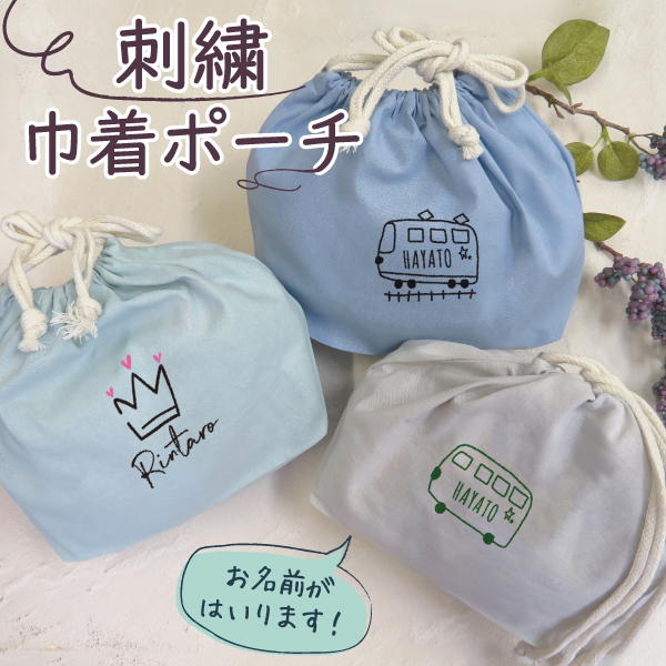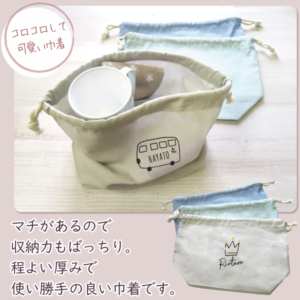 巾着 巾着袋 給食袋 小物入れ ポーチ 名入れ お名前 刺繍 記念品 卒園式 卒園記念 保育園 幼稚園 卒業式 卒業記念品