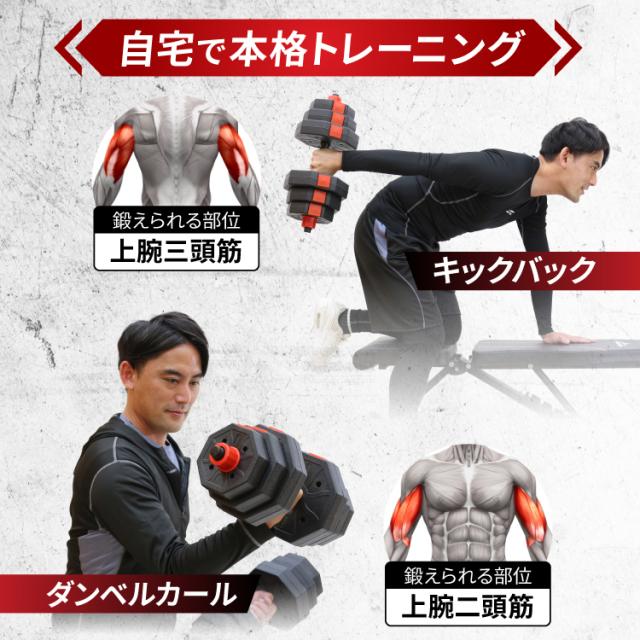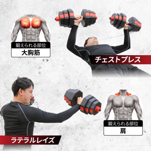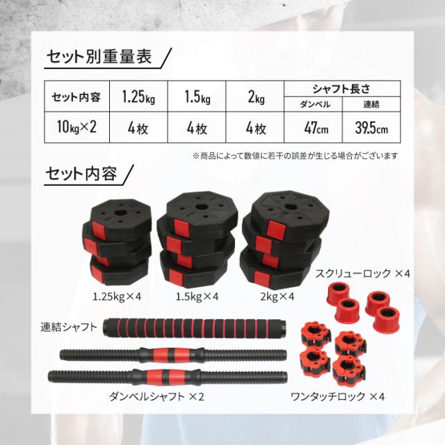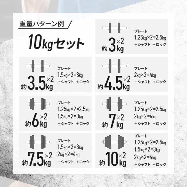 ダンベル 可変式 10kg 2個セット バーベルセット 筋トレ 筋トレ器具 ワンタッチロック スクリューロック