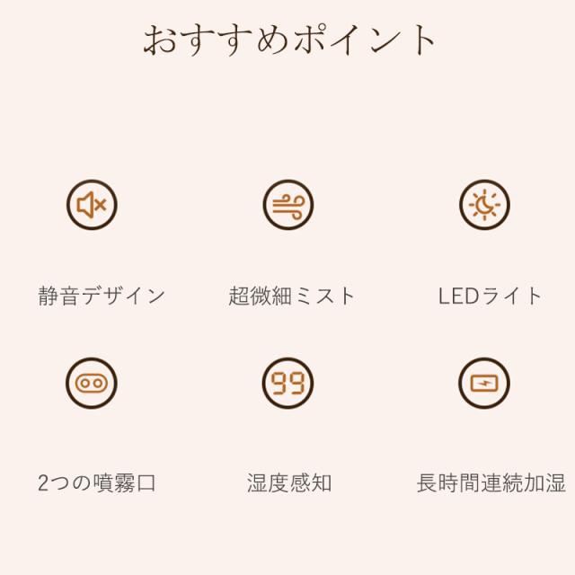 加湿力と静音性を兼ね備えており、ミスト量は最大200ml/hまで!