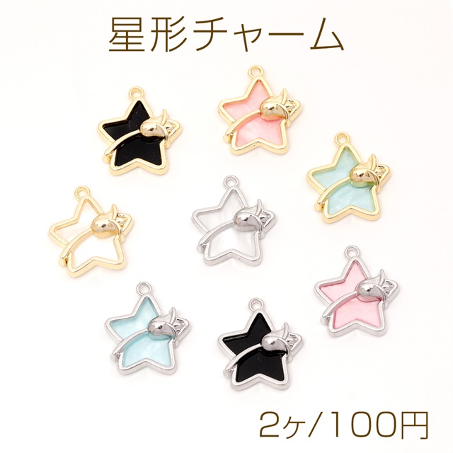 星形チャーム フラワー 花 バラ付き 樹脂チャーム メタルチャーム スターモチーフ 1カン付き 約16×18mm(2ヶ)