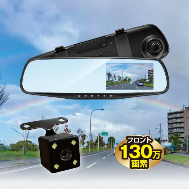 リアカメラ搭載 ミラー型 ドライブレコーダー ドラレコ ルームミラー型 デジタルインナーミラー 前後 2カメラ 2画面同時表示可能 送料無料