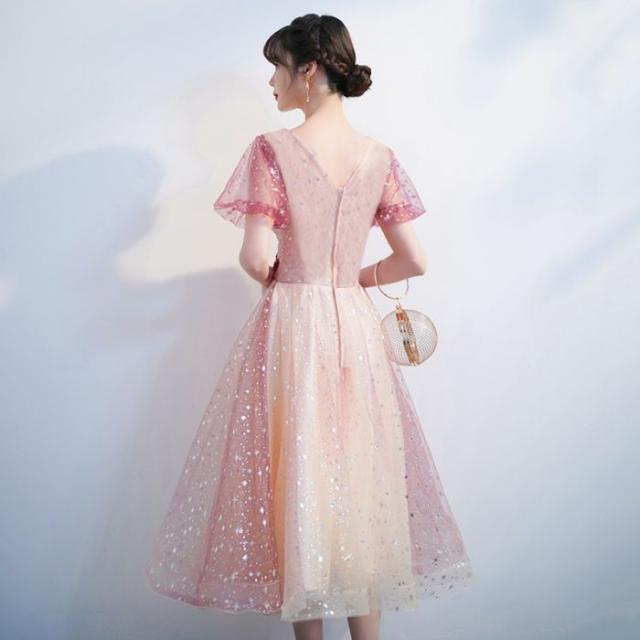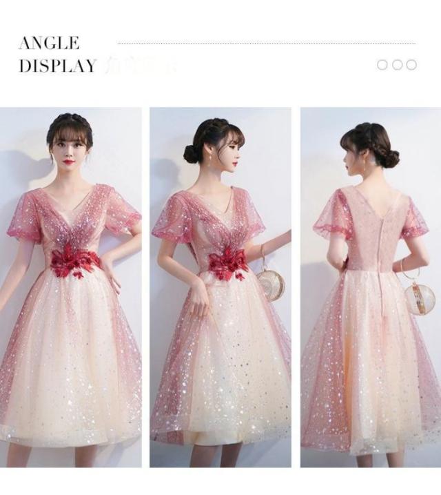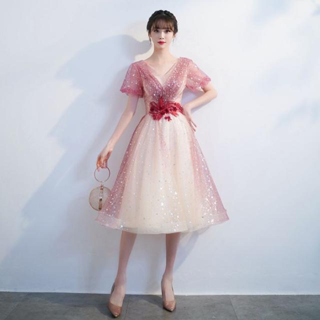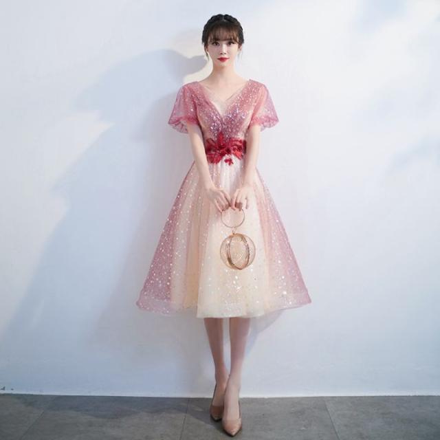 キャバドレス星空ドレスドレス2024新品夏グラデーションドレス赤いイブニングドレス