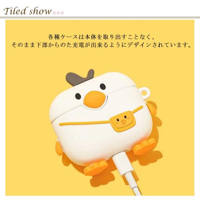 AirPods Pro2 ケース AirPods3 ケース あひる AirPods 1/2ケース AirPodsケース AirPods Pro AirPods2 AirPods1 ケース アヒル リュック 落下防止 着脱簡単 エアポッズ3 カラビナ付 耐衝撃 防水 エアポッツプロ カバー かわいい おしゃれ 第1世代 第2世代 第3世代