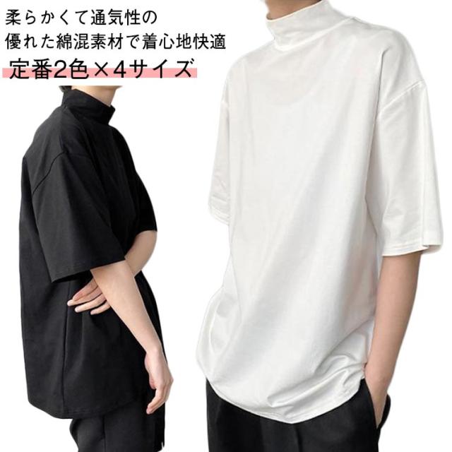 ハイネック 半袖 tシャツ カットソー レディース トップス メンズ 半袖tシャツ 半袖シャツ 大きいサイズ タートルネック 春 夏 秋 Tシャツ ゴルフ 薄手 フィット 無地 大きいサイズ おしゃれ シンプル 春夏 白 黒 韓国 20代 30代 40代 50代
