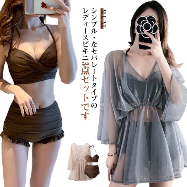 水着 レディース ビキニ 3点セット セパレート 水着 ラッシュガード ショートパンツ 水着ショーツ 水陸両用 紫外線対策 スイムウェア ビーチウェア 女性用水着 フレア水着 着痩せ 温泉水着 海水浴 無地 可愛い 韓国風 中学生 高校生 大学生