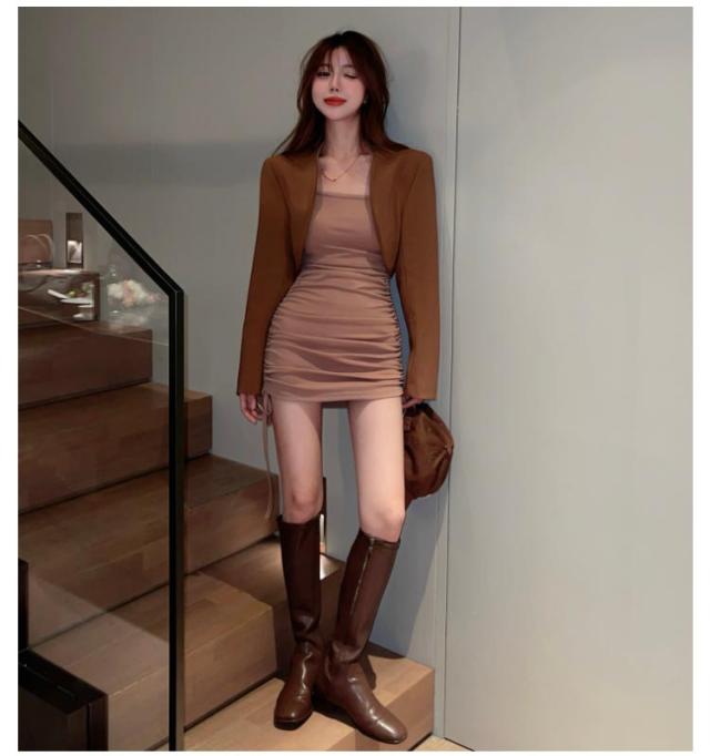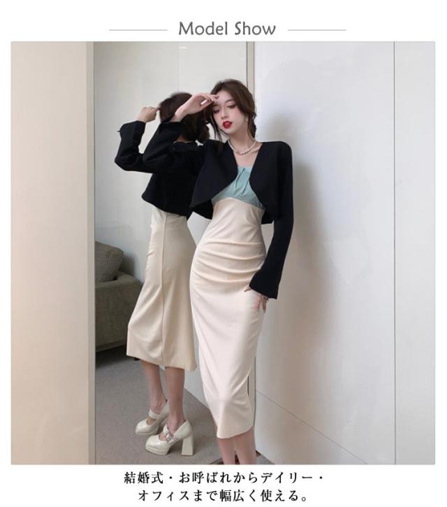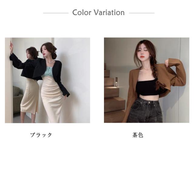 ジャケット 結婚式 フォーマル ショート丈 ノーカラージャケット 長袖 アウター レディース 20代 30代 40代 ブラック 茶色 送料無料