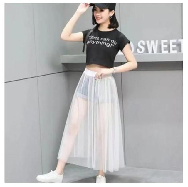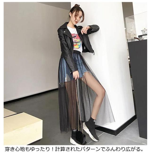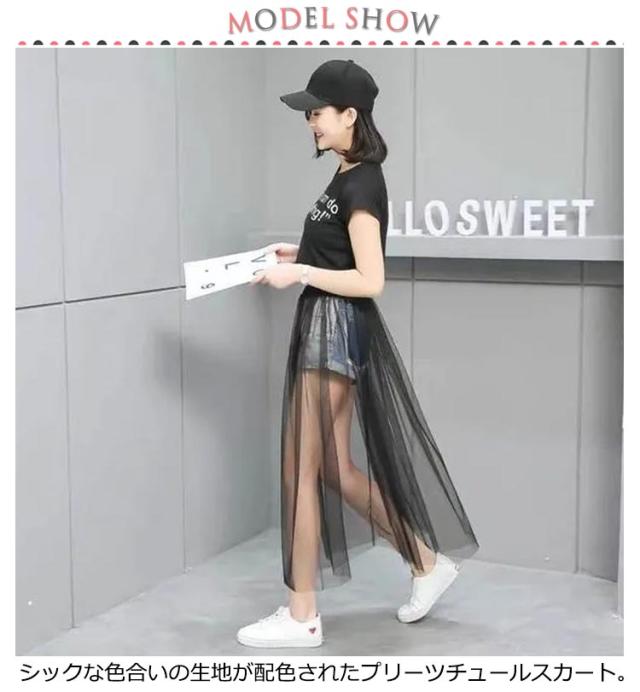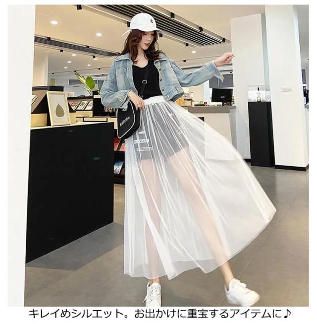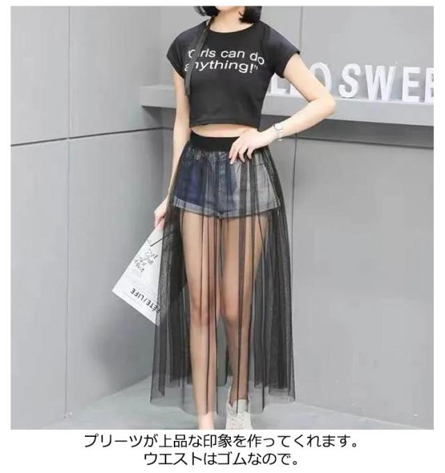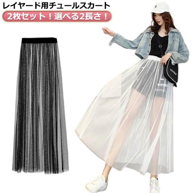 2枚セット!透け感 チュールスカート レディース スカート 重ね着 レイヤード フレア ロングスカート チュチュスカート ウエストゴム プリーツ フラワーレース 春 夏 ホワイト ブラック ダンス 衣装 ステージ衣装フレアスカート