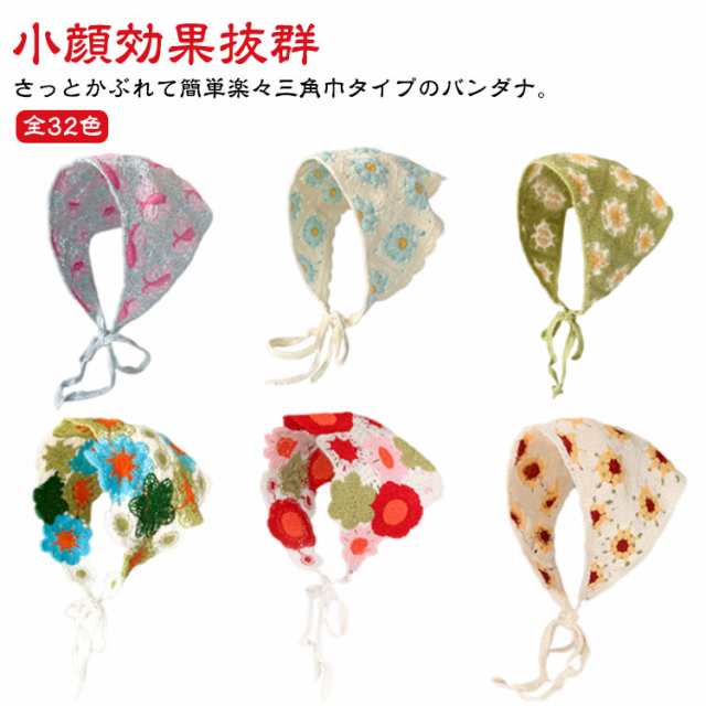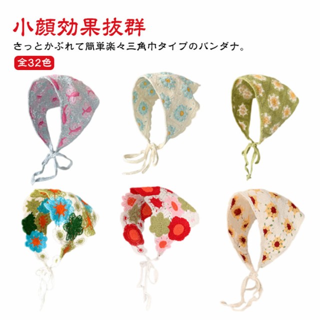 バブーシュカ 三角巾 小顔効果 可愛い 全32色 フランスのレトロなバンダナ ヘアアクセサリー ヘアバンド ヘアターバン カチューシャ 春夏 ヘッドドレス ニット 透かし編み ヘッドスカーフ レデイース カジュアル おしゃれ トレンド 旅行