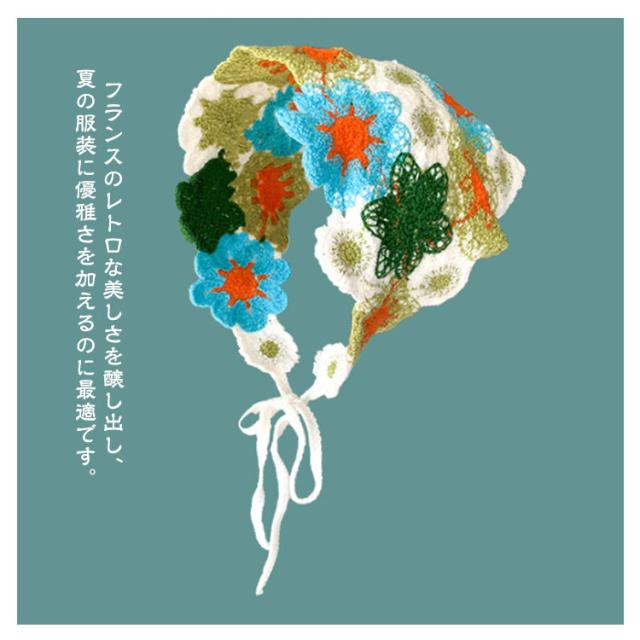 | 【小顔効果抜群】【全32色】 さっとかぶれて簡単楽々三角巾タイプのバンダナ。 透かし編みにしたデザインがとても繊細でお洒落です。 カチューシャの様な感じでも使ってもらえるのでこれからの季節にはぴったり! フランスのレトロな美しさを醸し出し、夏の服装に優雅さを加えるのに最適です。 コンパクトになりますので持ち運びにも便利。 | |