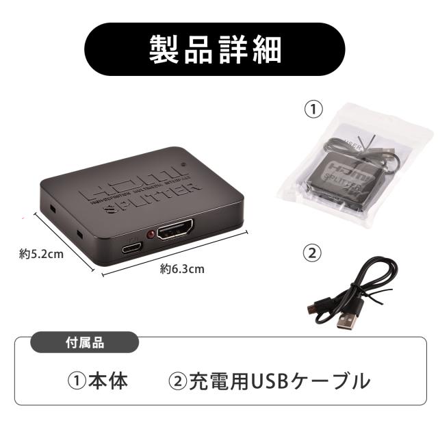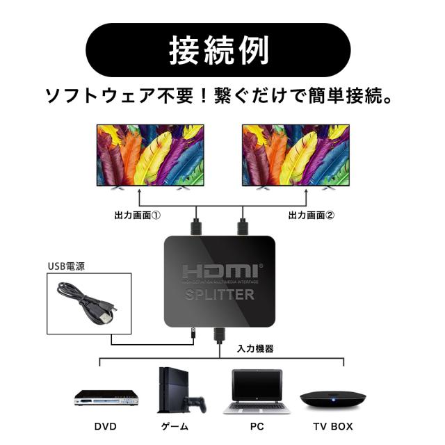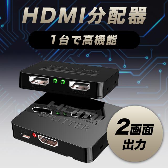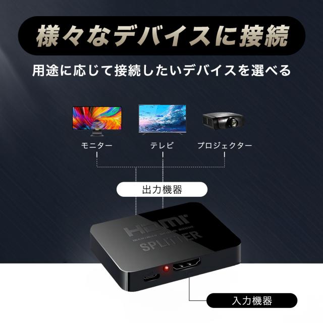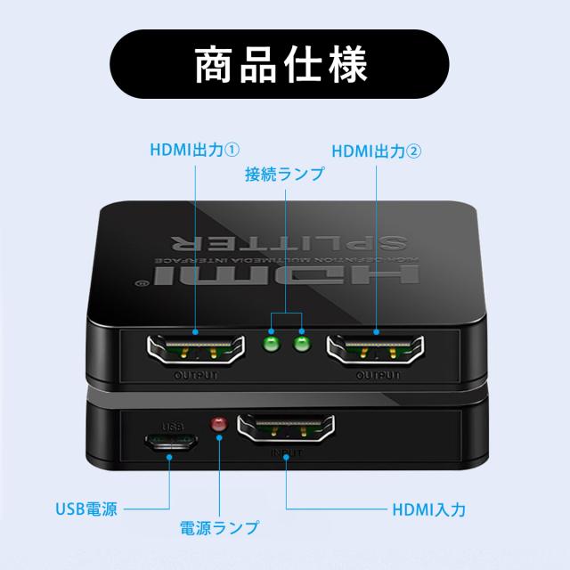 HDMI分配器 スプリッター ディスプレイ モニタ ケーブル 2ポート 4K対応 プロジェクター投影 パソコン 1入力 2出力