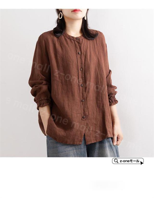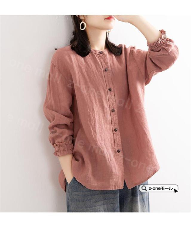 72h限定!【1点1,290円!2点購入&クーポンで】リネン混 シャツブラウス シフォンブラウス 春新作 送料無料 レディース 綿麻風 長袖 シャツ ブラウス レディース 体型カバー 前開き 丸襟 カジュアル ゆったり 薄手 涼しい UVカット ホワイトデー 卒業式