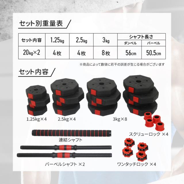 ダンベル 可変式 20kg 2個セット バーベルセット 筋トレ 筋トレ器具 ワンタッチロック スクリューロック