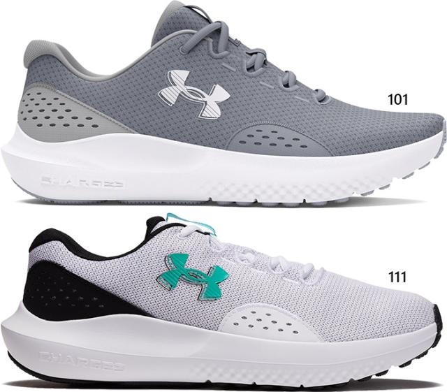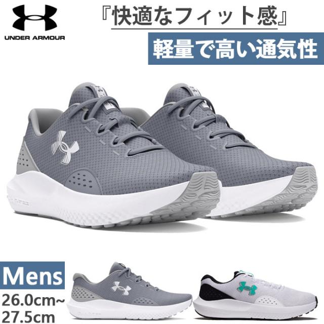 D幅 アンダーアーマー メンズ UA チャージド サージ4 ランニングシューズ ジョギング マラソン スニーカー シューズ ホワイト 白 グレー 灰色 送料無料 UNDER ARMOUR 3027000