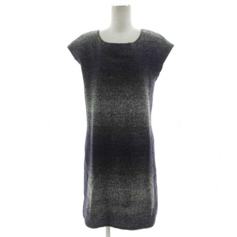 【中古】アンタイトル ワンピース ステッチ ミディ丈 日本製 もこもこ 起毛 グラデーション 配色 グレー 黒 紫 M