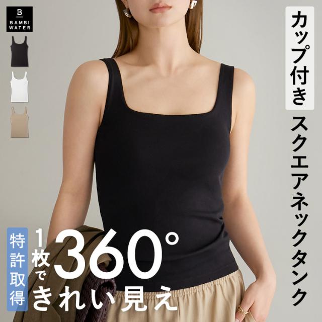 ブラトップ タンクトップ カップ付き ブラトップ インナー 育乳 盛れる 締め付けない 大きいサイズ トップス スクエアネック ノンワイヤー ブラ内蔵 楽 快適 バストケア ホールド力 レディース バンビウォーター 送料無料 秋
