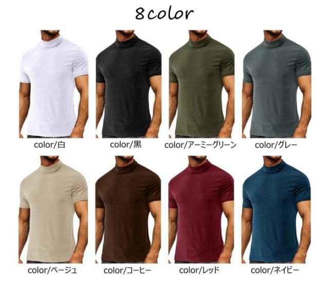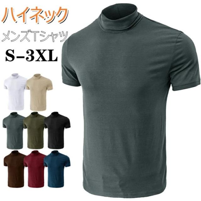 ハイネック tシャツ 半袖 メンズ ゴルフ ゴルフウェア カットソー 無地 在宅 作業着 モックネックシャツ トップス スポーツ ティーシャツ ポロシャツ
