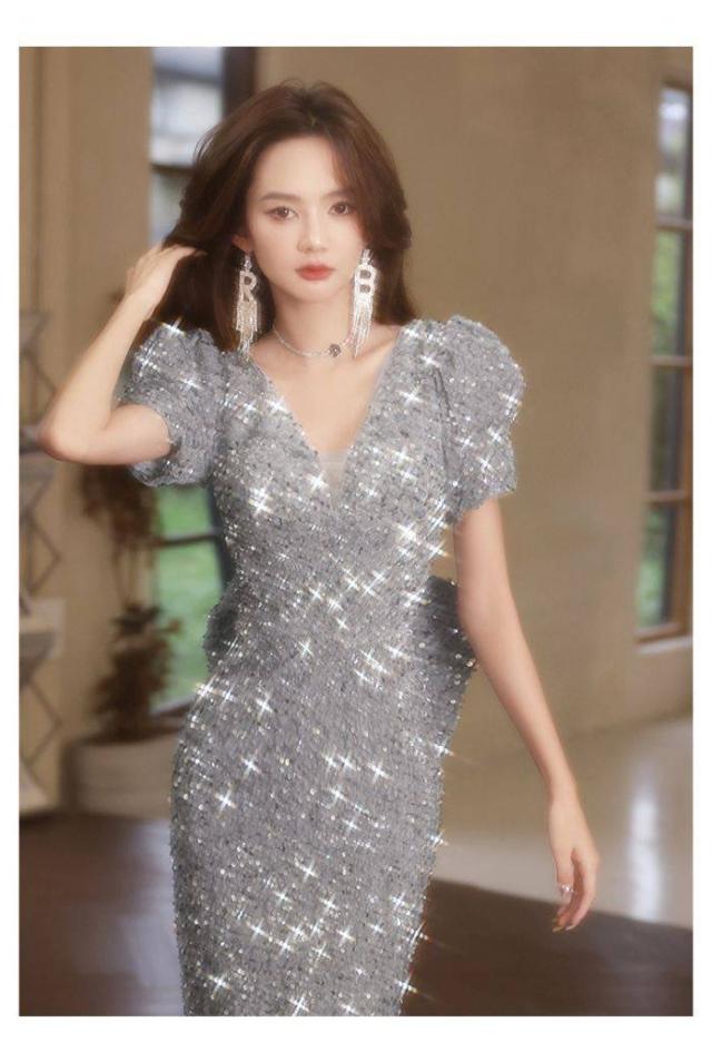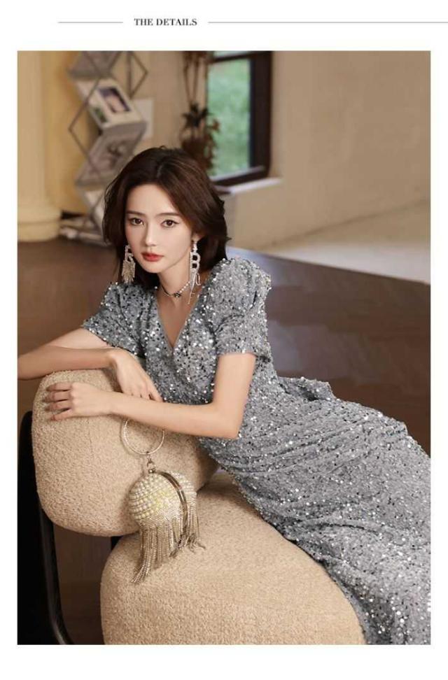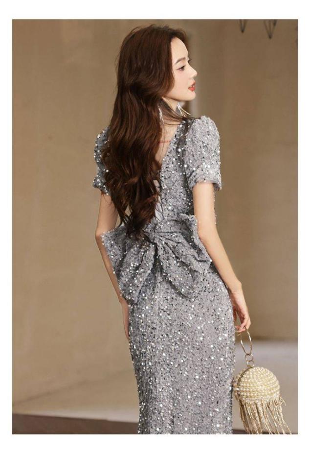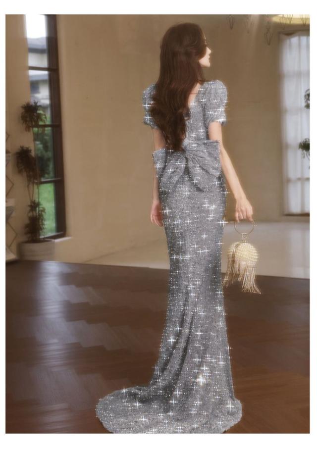 イブニングドレス女性2024お洒落軽い贅沢感シルバーパーティー成人式ファッションロングドレス軽い贅沢