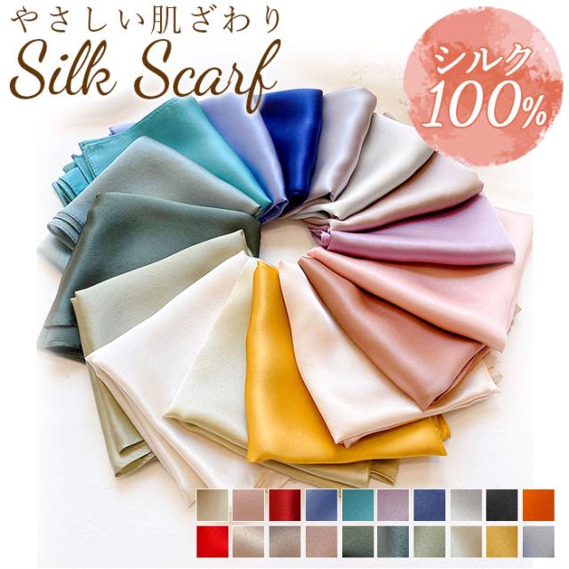 スカーフ シルク 100% 正方形 通販 シルクスカーフ ミニスカーフ 大判ハンカチ 首巻き えりまき シルクスカーフ53 小さめ 無地 シンプル 夏 春夏 春秋 シルク100% 100 パーセント