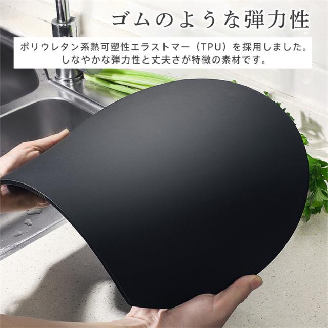丸いまな板 D型まな板 キズ防止 食洗機対応 お皿 切りやすい 滑りにくい 耐熱性 エラストマー 薄型 曲がる 熱湯 多機能 まないた