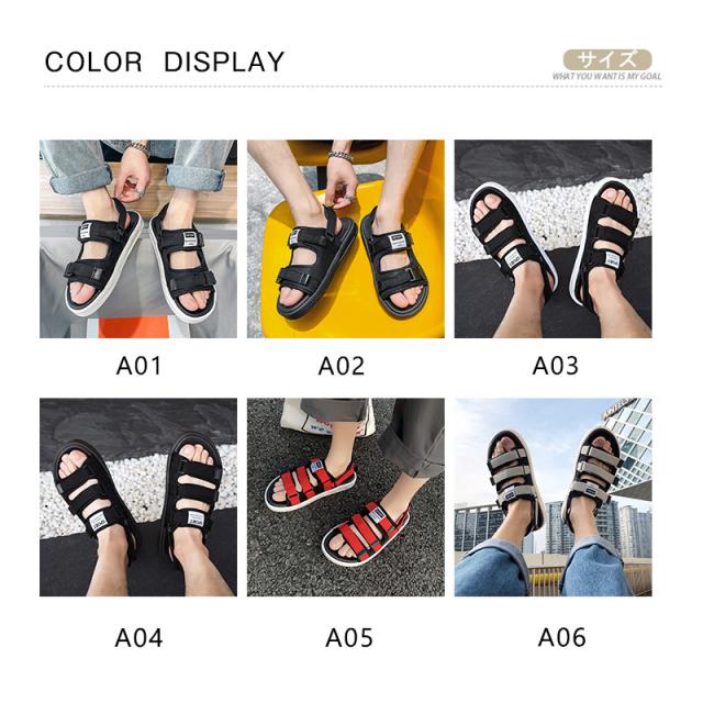 サンダル メンズ スポーツサンダル ビーチサンダル 夏 通気性 厚底 マジックテープ カジュアル 韓国風 滑り止め アウトドア 父の日 歩きやすい