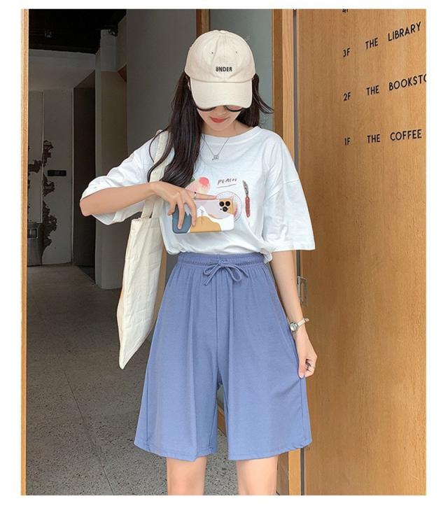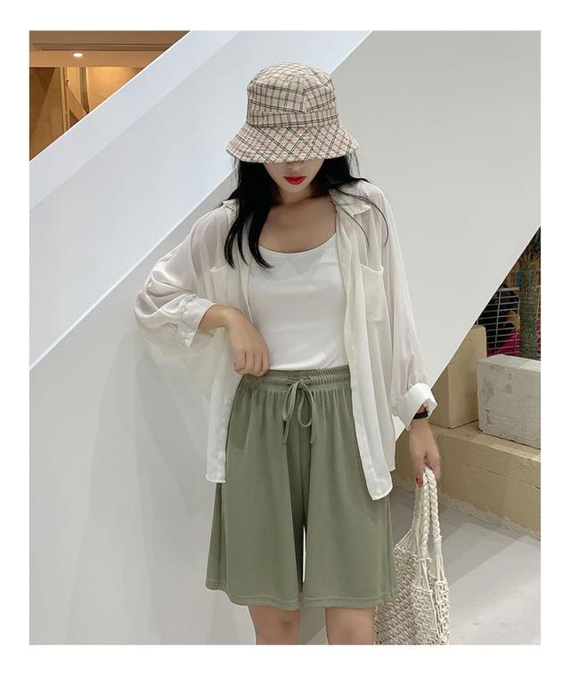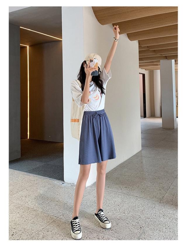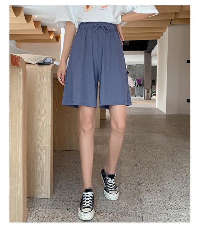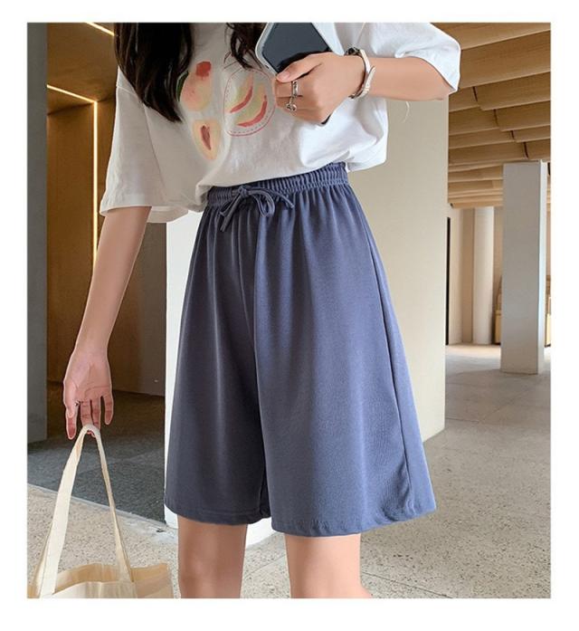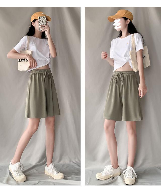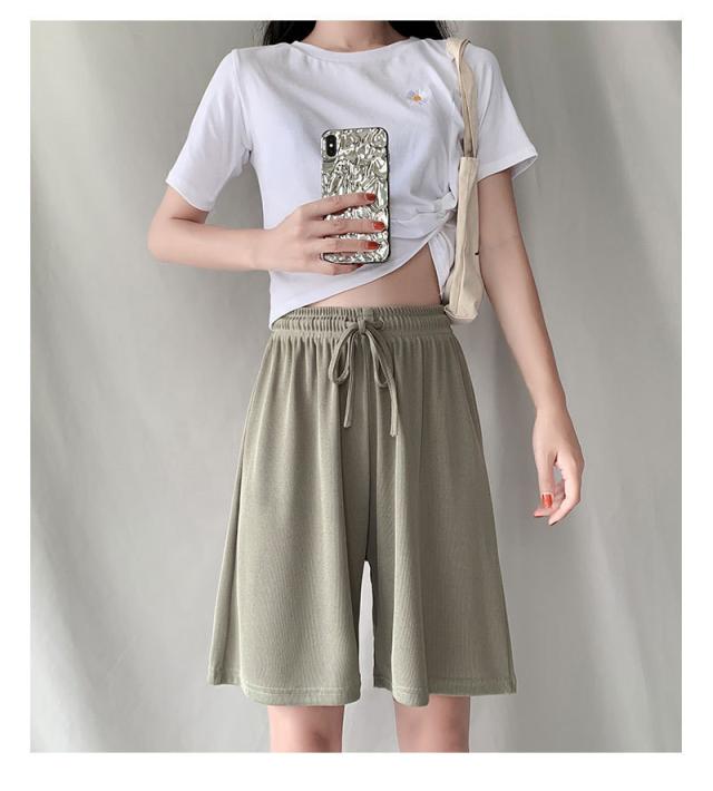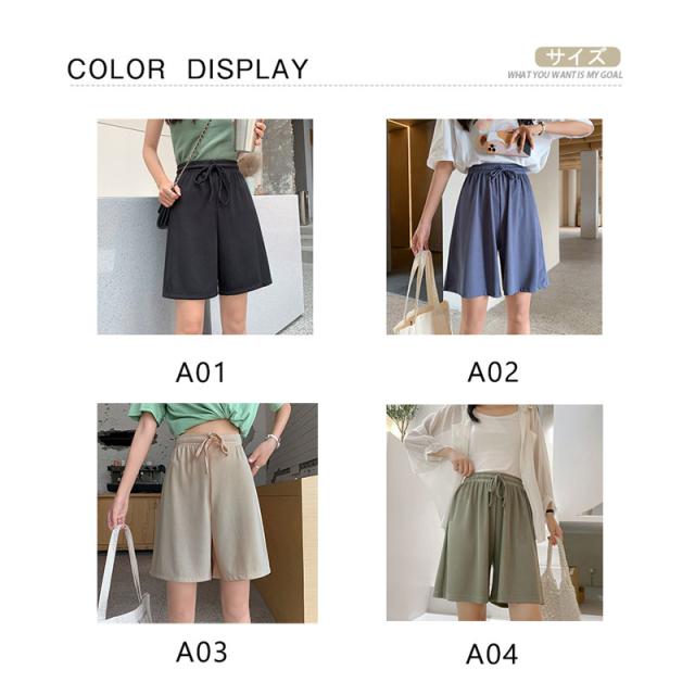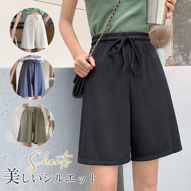 ショートパンツ レディース ハーフパンツ ウエストゴム 短パン ゆったり 接触冷感 無地 ハイウエスト ワイド キレイめ