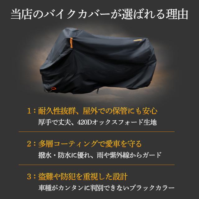 バイクカバー 大型 厚手 420d 耐熱 リアボックス対応 ビックスクーター 防水 耐久性 盗難防止鍵穴付き 破れにくい 反射材 防風 収納袋付き