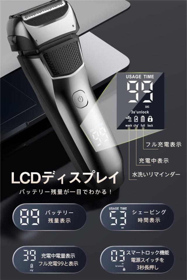 【キーワード】コンパクト 激安 母の日 父の日 新生活 おしゃれ セール シンプル 便利 無地 長持ち 耐久性 新作 人気 定番 敬老の日 多機能 男性用 シェーバー 電気シェーバー メンズシェーバー 電動シェーバー IPX7防水 洗い可能 顔 髭剃り ひげそり トリマー搭載 LCDディスプレイー USB充電式 お風呂 旅行 持ち運び便利 丸洗い 乾湿両用 深ぞり ヒゲソリ 電気カミソリ 電気かみそり 3枚刃