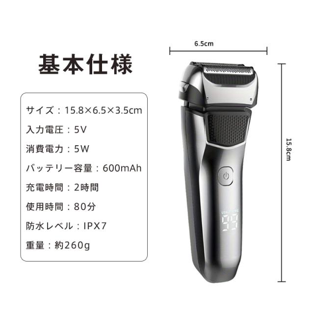 メーカー希望小売価格: 6,580円シェーバー メンズシェーバー 電気シェーバー 電動シェーバー 3枚刃 IPX7防水 髭剃り トリマー搭載 USB充電式 乾湿両用 ヒゲソリ カミソリ