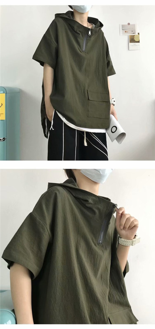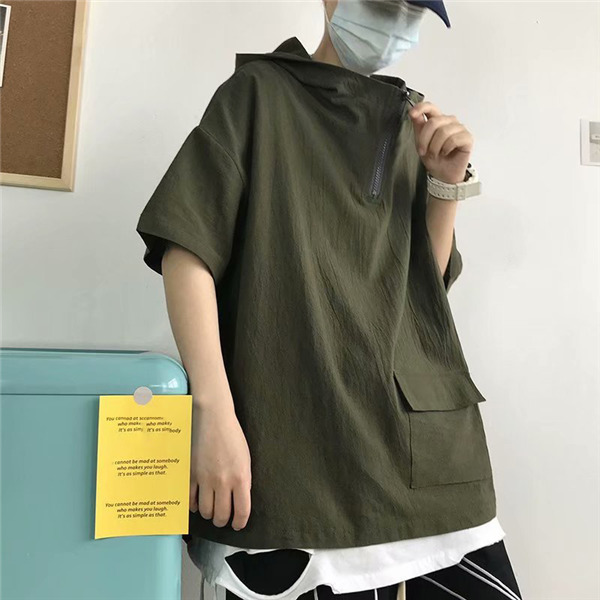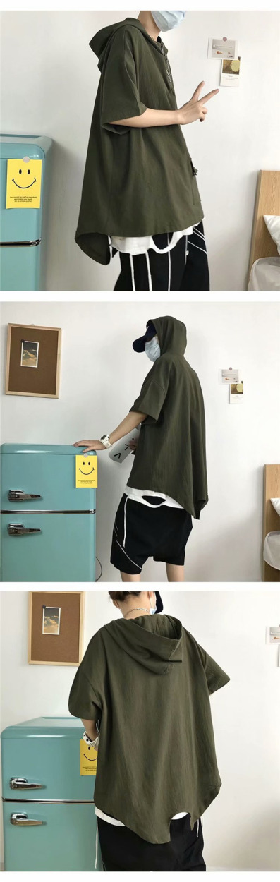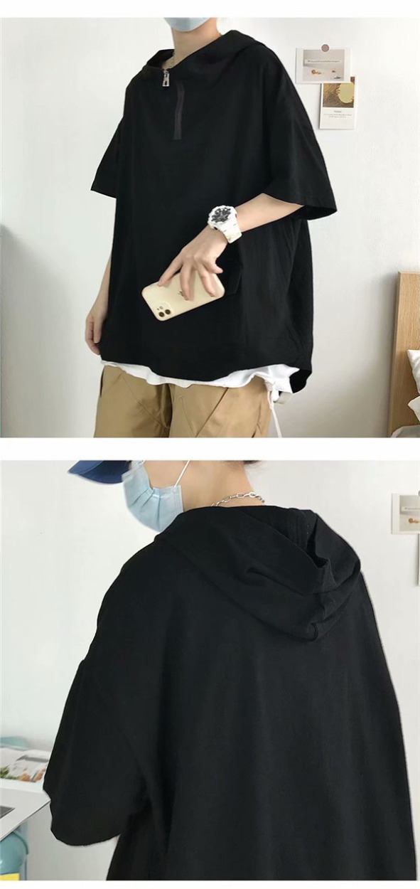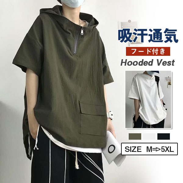 半袖パーカー メンズ 接触冷感 涼しい 夏服 プルオーバー フード付き トップス カジュアル シンプル ゆったり 無地 おしゃれ 通学 通勤 お兄系