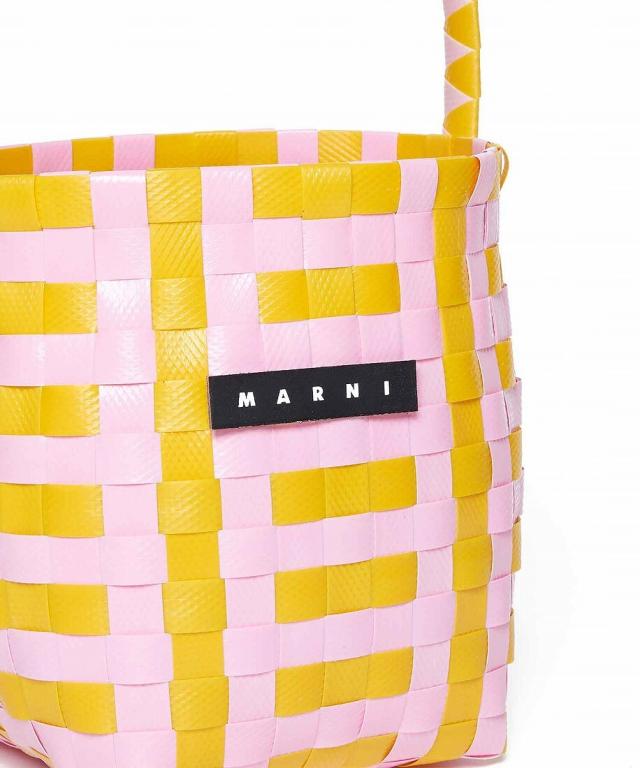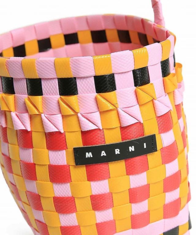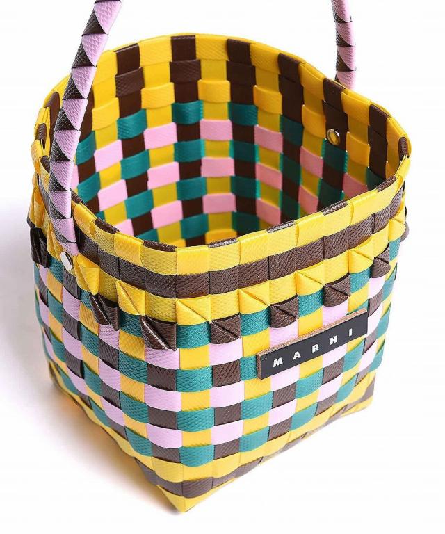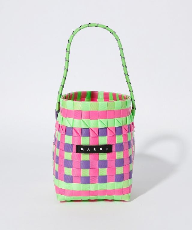 MARNIらしいビビッドなカラーが魅力のかごバッグ。職人がひとつひとつ編み上げた至極の逸品で、バスケット編みならではの立体感やフロントに添えたロゴもポイント。ミニサイズながらもたっぷり収納力も十分。