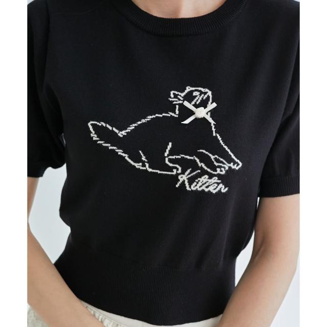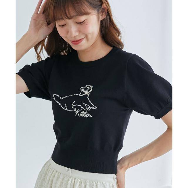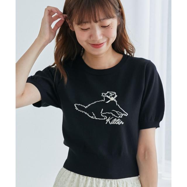 キャットジャカード半袖ニット