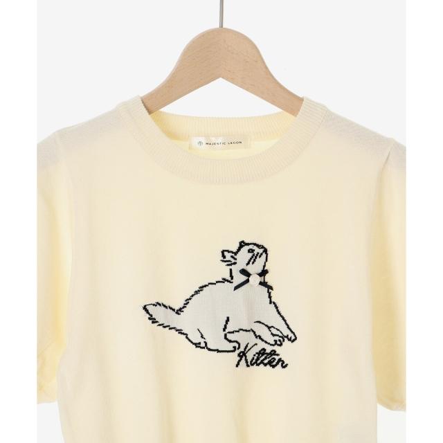 マジェスティックレゴン(MAJESTIC LEGON)/キャットジャカード半袖ニット