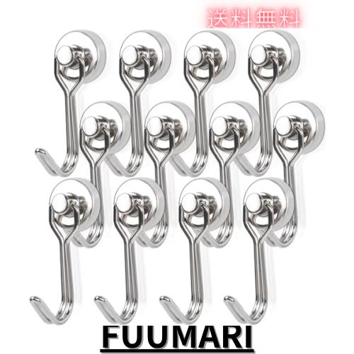 MAGXCENE 12個セット 超強力マグネット フック 強力 ネオジム磁石 直径16mm ステンレス製 防錆防水 磁石フック 回転式 壁掛けフック 磁石