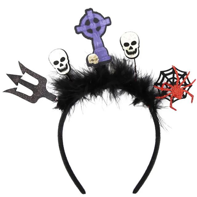 コスプレ カチューシャ ヘアバンド ユニーク 髪飾り ブラック 黒色 悪魔の鋒 デビル スカル ドクロ 髑髏 ガイコツ 骸骨 墓標 墓石 クロス クモ スパイダー 蜘蛛 赤色 レッド モヘア 紫色 パープル 十字架 クロス オバケ 仮装 ハロウィーン ハロウィン レディース メンズ