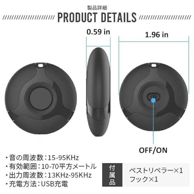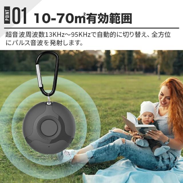 超音波周波数13KHz〜95KHzで自動的に切り替え、全方位にパルス音波を発射します。360度の音波が立体的にサラウンドし、音波透過性が優れ、いろいろな場所で使用可能です。