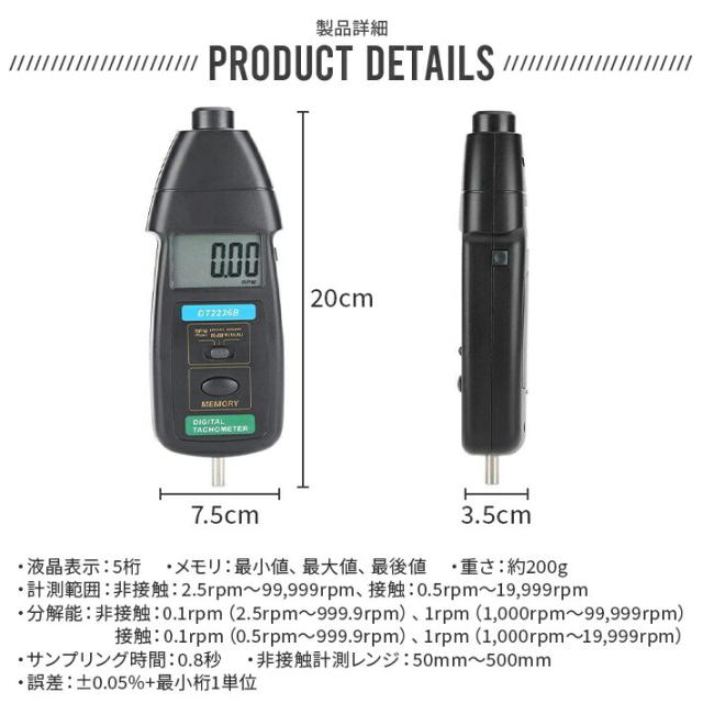 デジタル式回転計 接触式/非接触式両用 様々な物の回転数を手軽にデジタル計測LED デジタル光学接触タコメーター検出器メーター