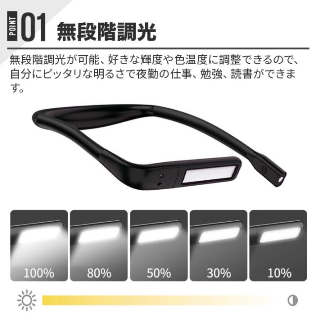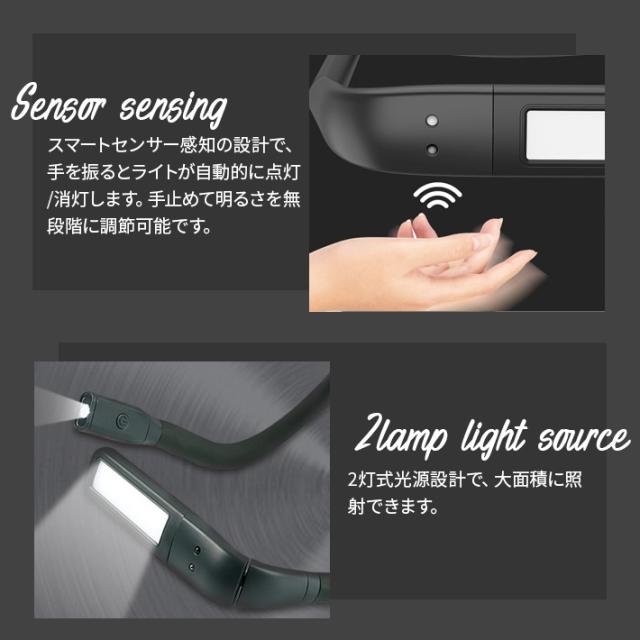 2024新登場 ネックライト 充電式 首かけ ライト ブックライト 3つの色温度/明るさ調整 センサー機能付き USB充電式