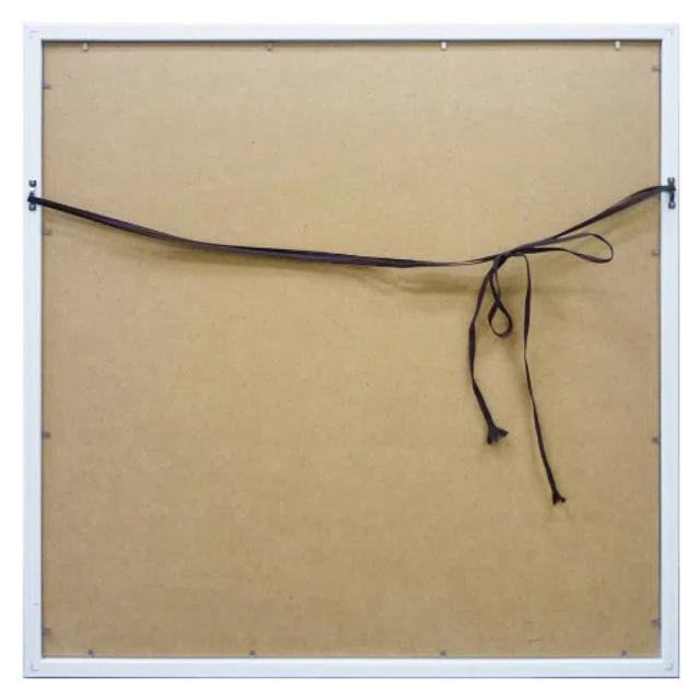 フレームに壁掛用金具が付いておりますので、付属のヒモを結び、壁に取り付けた金具に引っ掛けます。