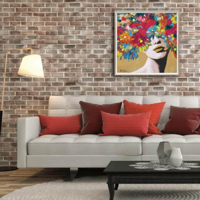 アートパネル オイルペイントアート 『コスモス ウーマン』 63×63cm ( 絵画 絵 アート インテリア 額 額入り 壁掛け カラフル 女性 花 ポスター アートフレーム アートポスター ウォールアート パネル 額付き )