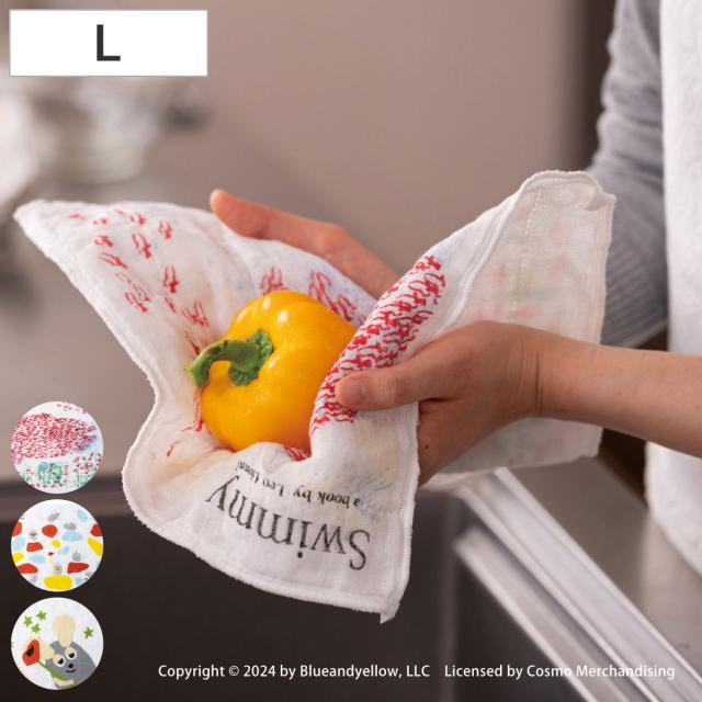 ふきん フレデリック いろんないろ スイミーたち 蚊帳生地ふきん L 40×30cm ( かやふきん 布巾 日本製 スイミー レオレオニ 綿 レーヨン 蚊帳 吸水 クロス かや生地 台拭き 食器拭き ディッシュクロス おしゃれ かわいい 長方形 )
