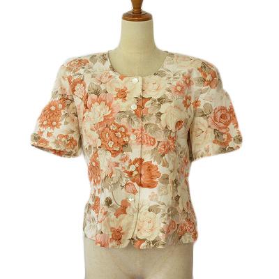 【中古】アクアスキュータム AQUASCUTUM ヴィンテージ レトロ ブラウス ノーカラー 花柄 半袖 アイボリー レディース