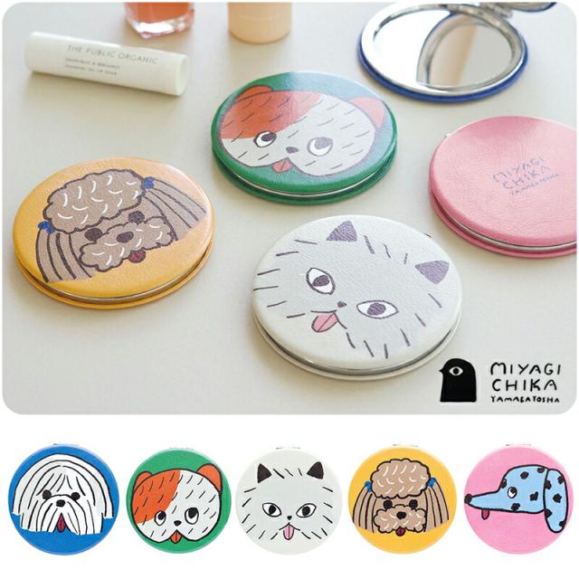 山鳩舎 コンパクトミラー ミラー 鏡 手鏡 猫 ねこ ネコ 北欧 拡大鏡 レザー イヌ 犬 ネコ 猫 くま 熊 クマ Yamabatosha みやぎちか レトロ カラフル POP おしゃれ マルチーズ シンプル ナチュラル キッズ bear cat dog