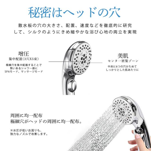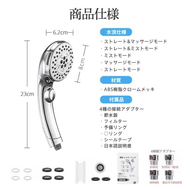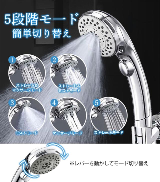 シャワーヘッド マイクロ ナノバブル シャワー5段階モード 節水 アダプター付 ミスト 保温保湿 高洗浄力 毛穴汚れ
